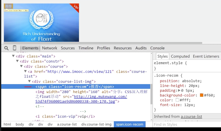 左上角的图标在图片前面,使用绝对定位后,由于它不占据空间,图片跟随上去代替了它原本的位置,效果就非常完美