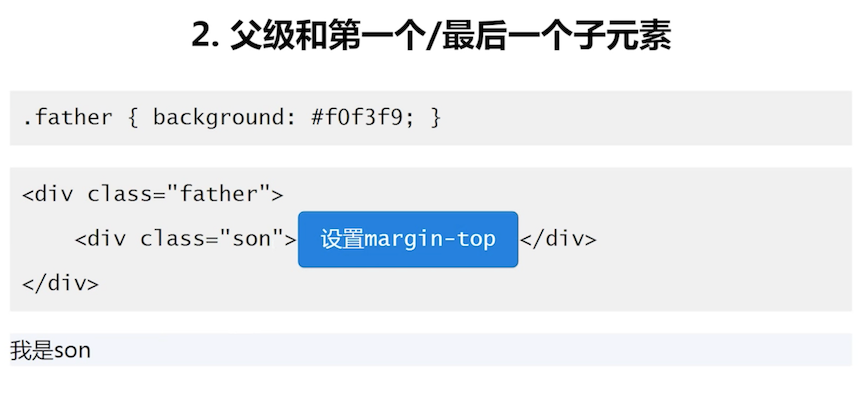 那个 son 的背景颜色,让我们看到了它的高度;给他施加 margin-top 后,按照理解,它的背景颜色区域会变高。实际上是被重合了。没有任何变化,反而是距离上面的距离远了。