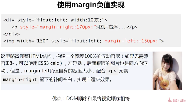 上图的示例在 float 课程中讲过的,那么能实现这一的原理就是,margin 改变了水平方向的可视宽度。