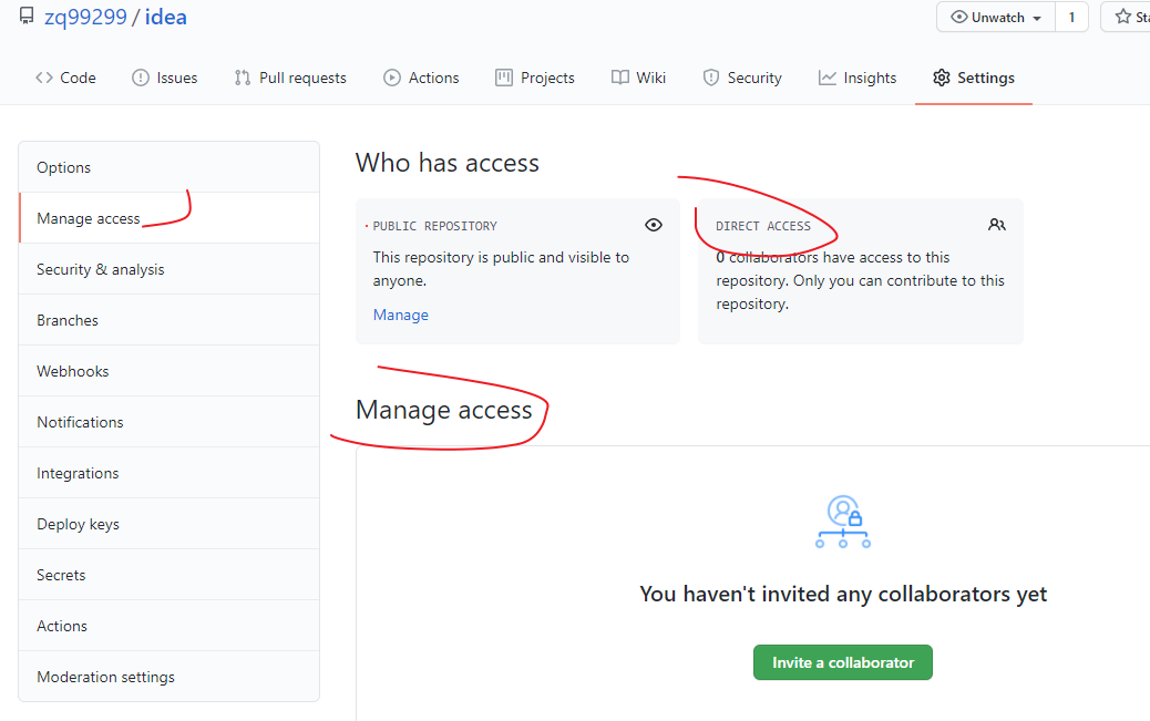 新版本的 GitHub 已经是上图这样了,这个地方应该是添加合作者的地方。