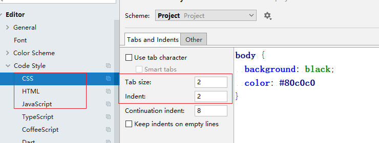 代码缩进设置,把 css,html,js 都设置成 2 个空格缩进