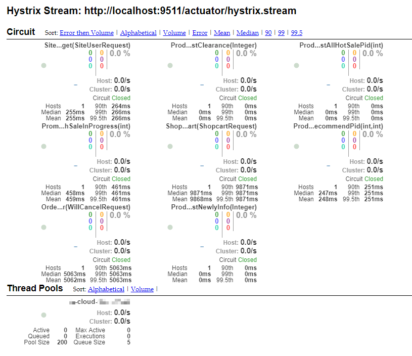 这个时候随意打开一个仪表盘,如 http://localhost:80/hystrix/ ,填入通过 /clusters 获取到的 link 地址,即可观察该集群信息